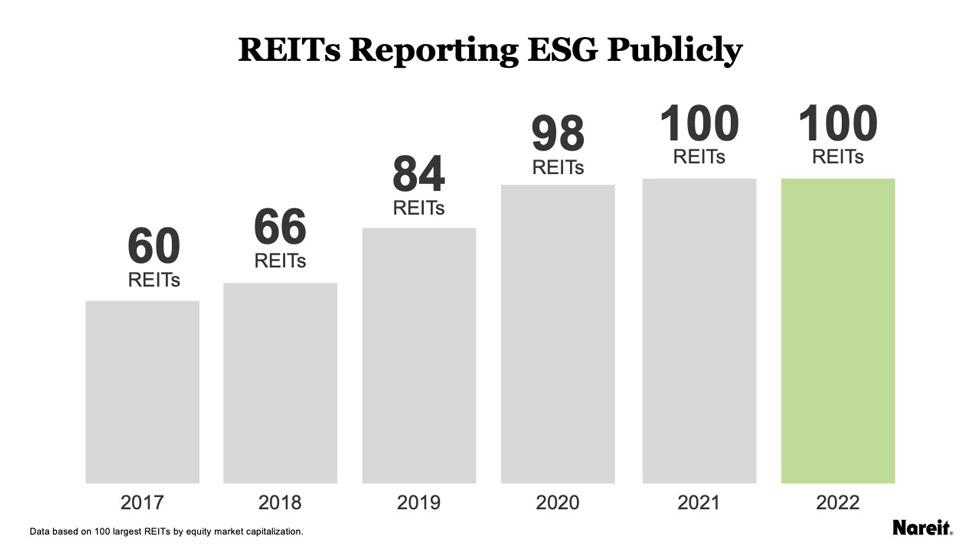 Nareit publishes REIT industry reports annually and sponsors external research on sustainability and social responsibility relevant to the real estate industry. This includes the annual REIT Industry Sustainability Report, which delivers metrics and trends providing valuable insights for the REIT community on the industry’s adoption of sustainability reporting practices and leadership strategies.