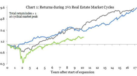REITs have provided that diversification benefit because their underlying returns are driven by the real estate market cycle, which is very different from the business cycle that drives the returns of most other companies in the stock market.
