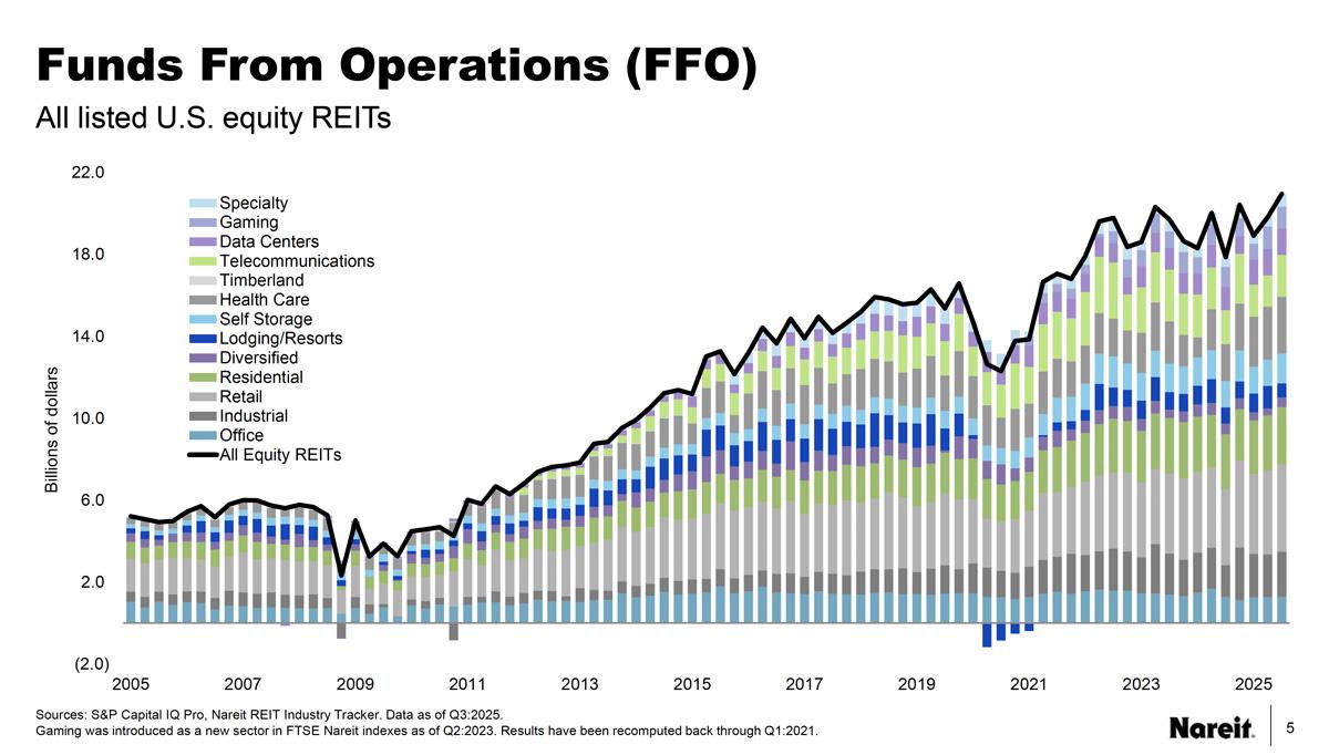 “REITs continued to deliver solid operating performance during a tumultuous year,” said Nareit Executive Vice President of Research and Investor Outreach John Worth. “The strong operational results and well-managed balance sheets that are evident in this quarter’s results reinforce our view that REITs are well-positioned to capitalize on accretive growth opportunities as they emerge in 2026.”