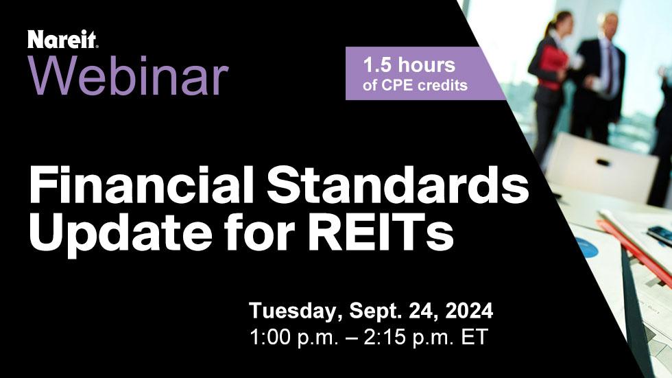 This educational webinar was open to Nareit members, who were able to earn 1.5 hours of CPE credit.