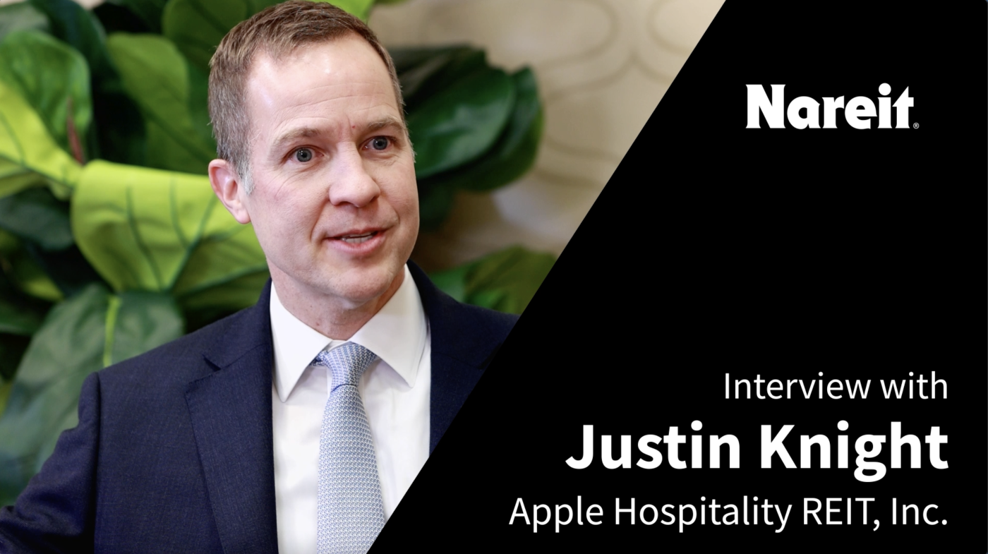 Justin Knight, president and CEO of Apple Hospitality REIT(NYSE: APLE), sat down for a video interview during Nareit’s REITworld: 2025 Annual Conference in Dallas, Dec. 8–11.