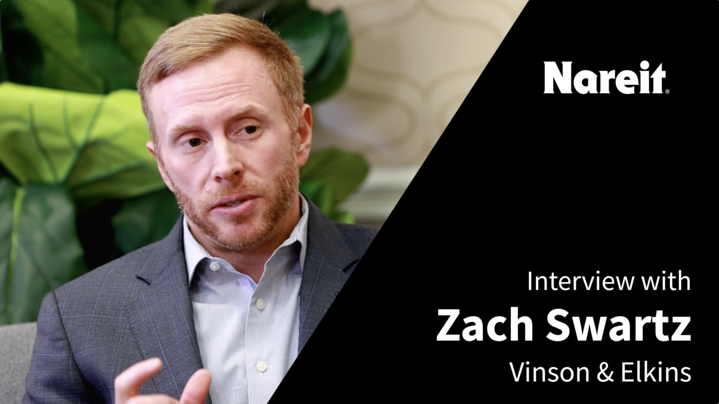 Zach Swartz. partner at Vinson & Elkins, sat down for a video interview during Nareit’s REITworld: 2025 Annual Conference in Dallas, Dec. 8–11.